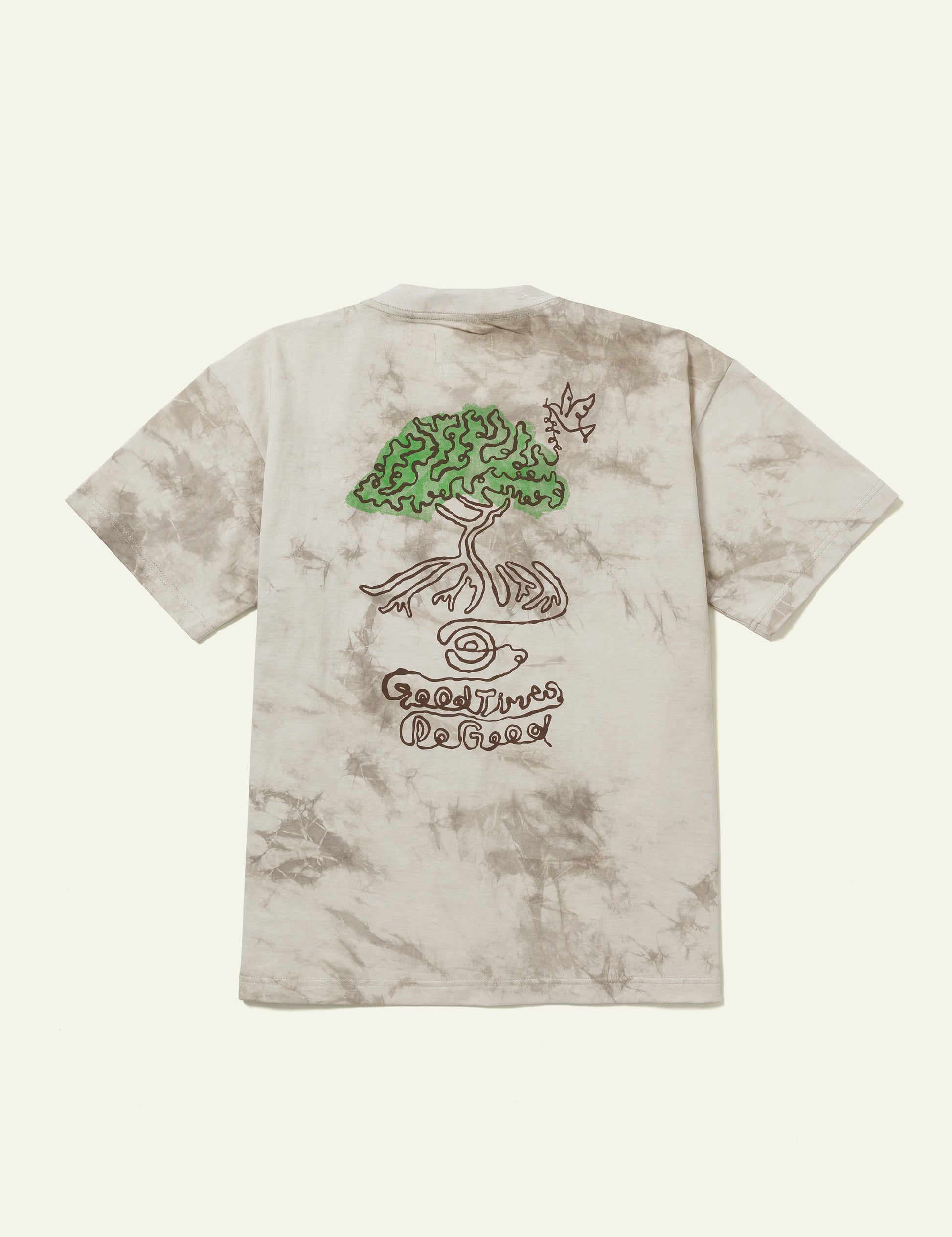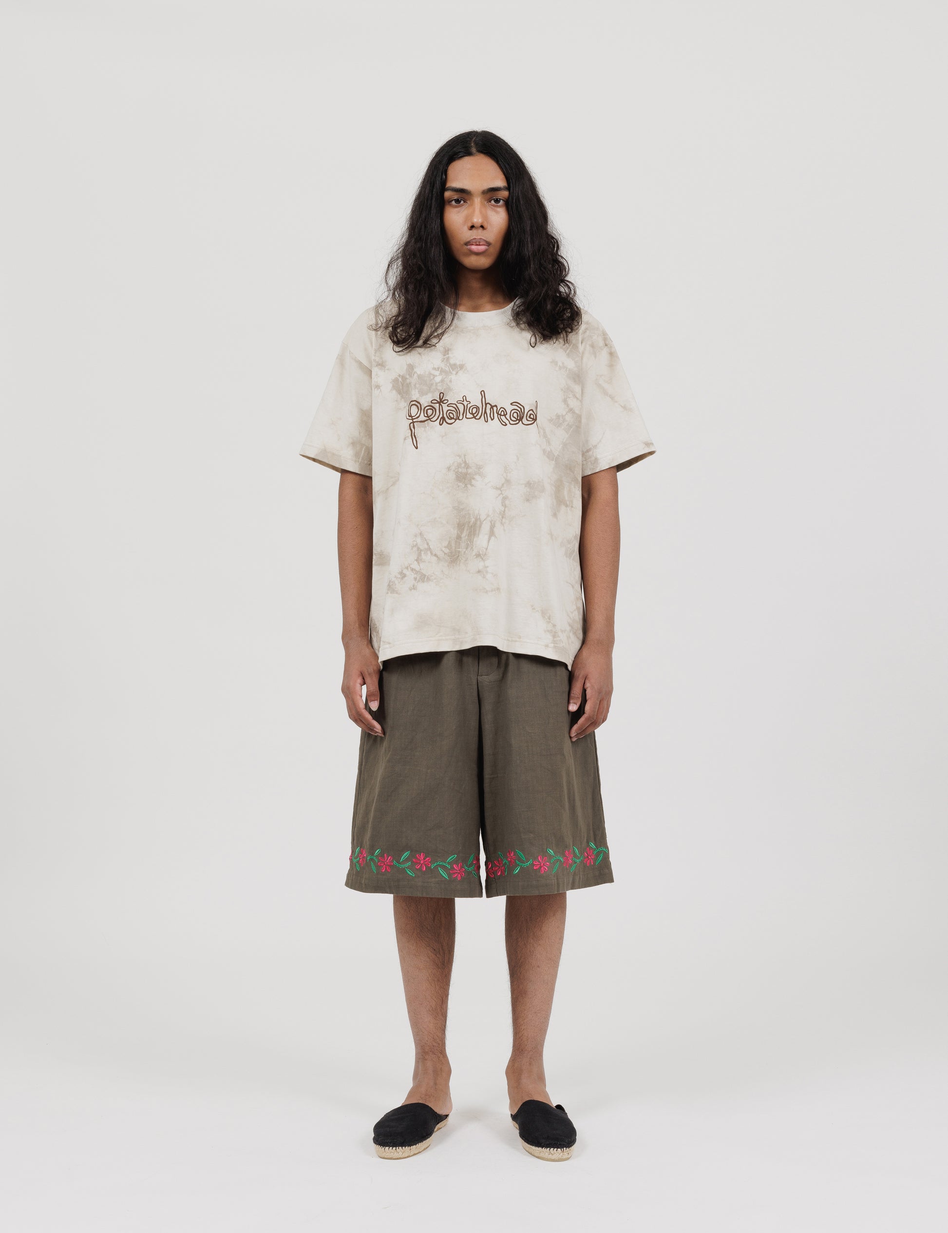 Naturally tie-dyed with plants, silk printed with a reference to Potato Head's place as the seed of community where good times do good.