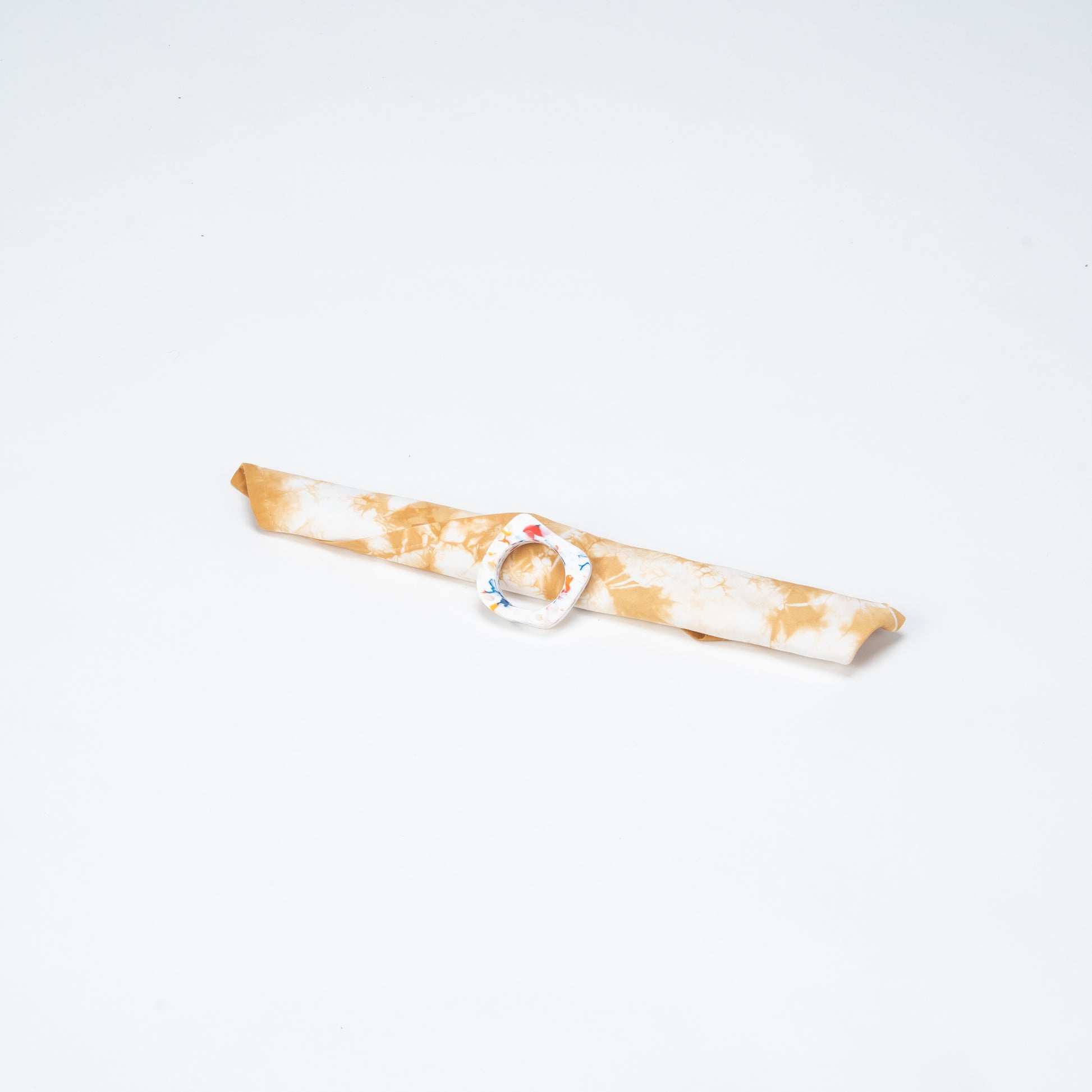Set of 4 flat plastic napkin rings designed by Max Lamb. Each set of four vary in shape due to the organic nature of the design.