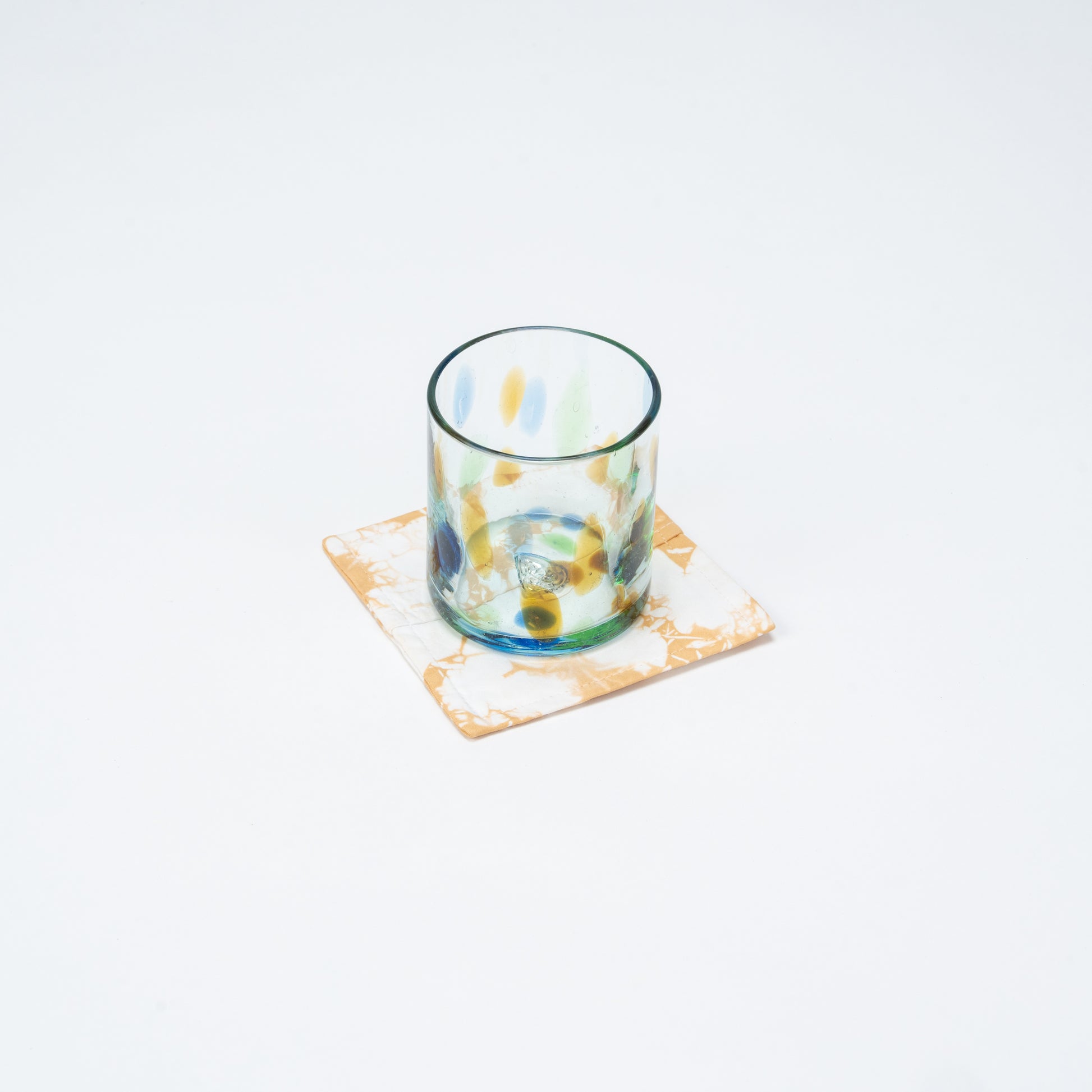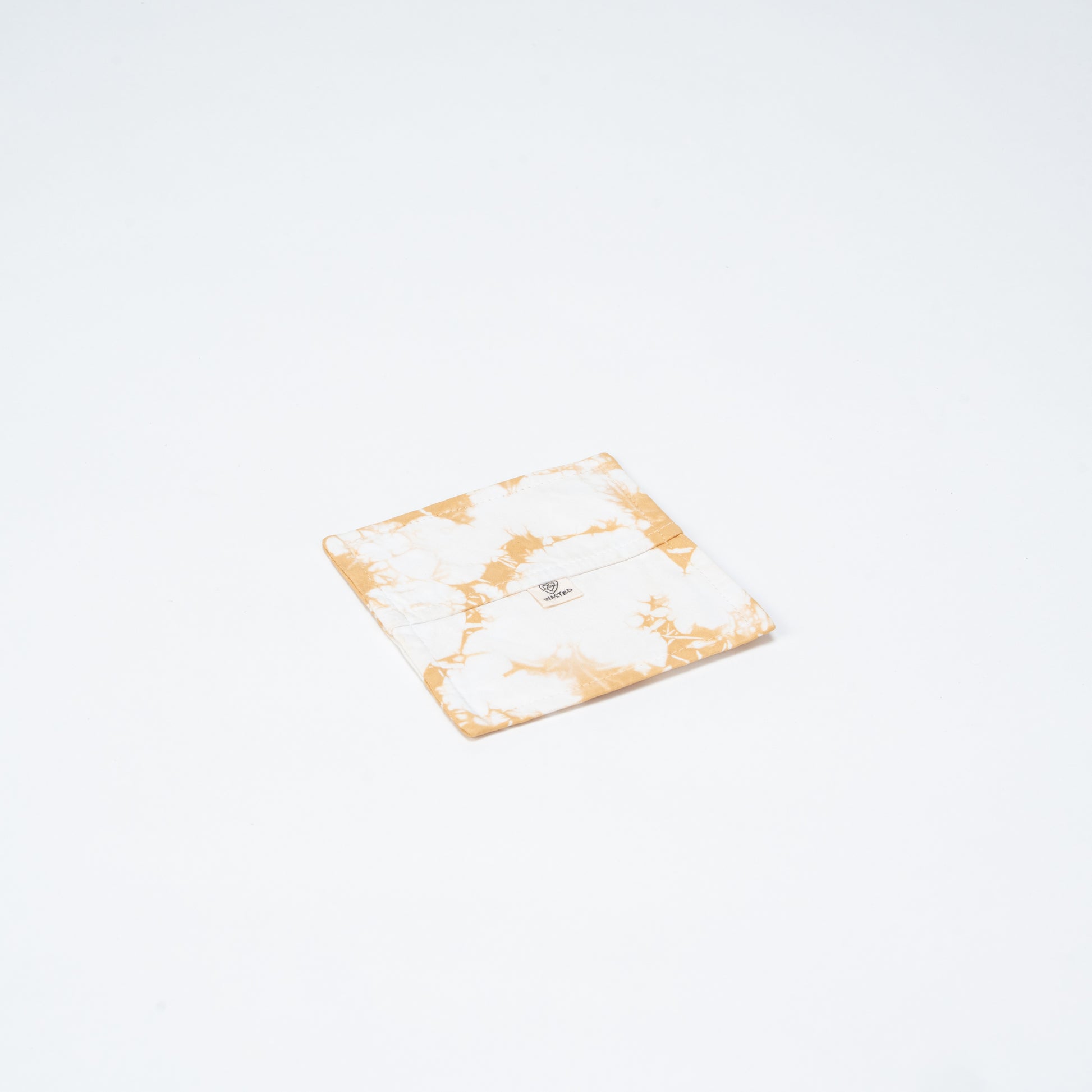 Set of 4 coasters designed by Max Lamb and hand crafted using waste bed linen fabrics. All textile crafts feature a custom Marigold flower plant tie-dye design.