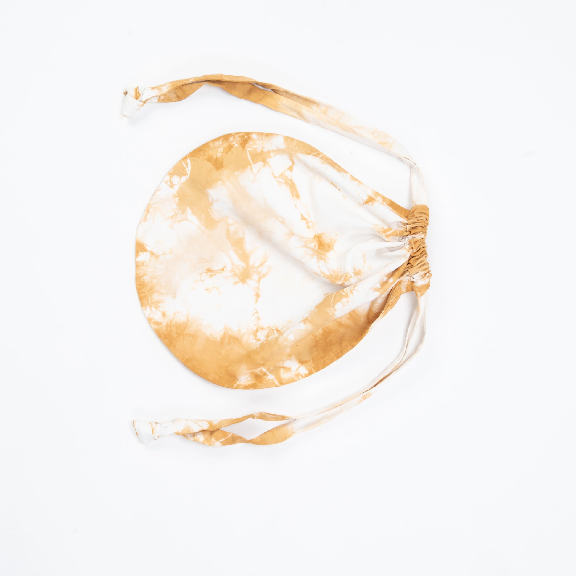 Draw cord pouch designed by Max Lamb and hand crafted using waste bed linen fabrics. All textile crafts feature a custom Marigold flower plant tie-dye design.