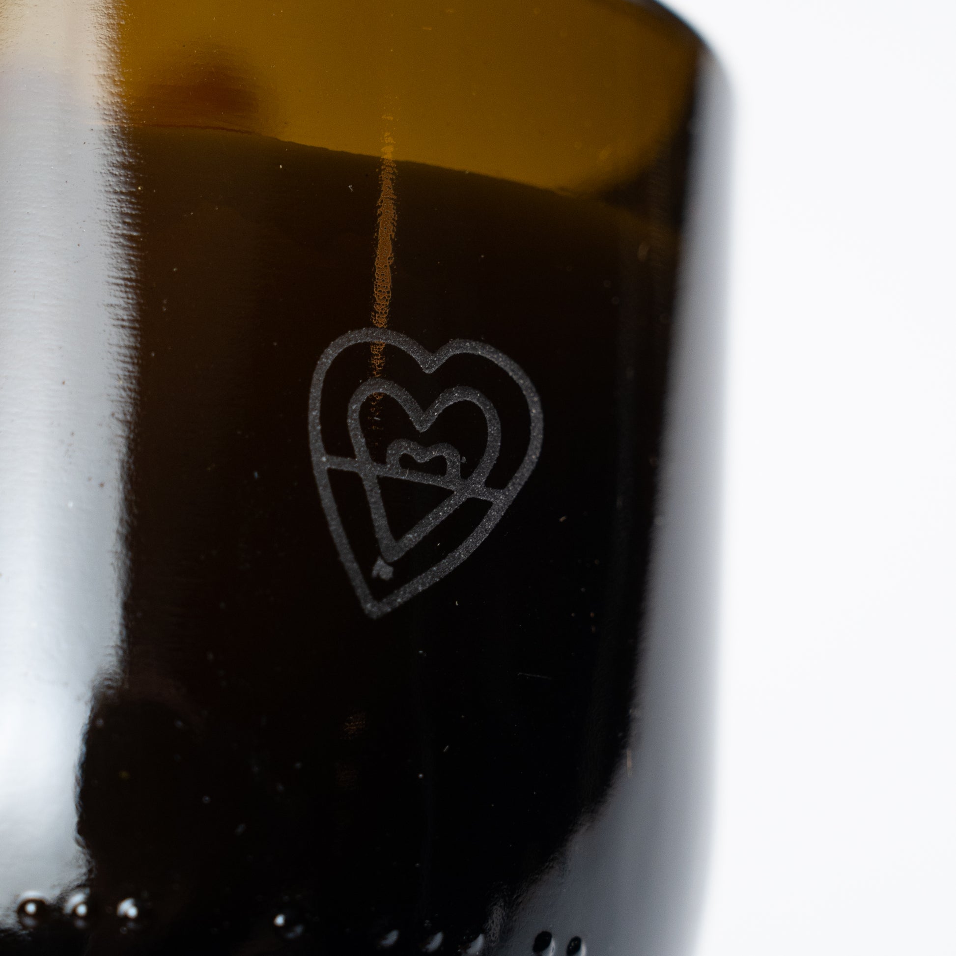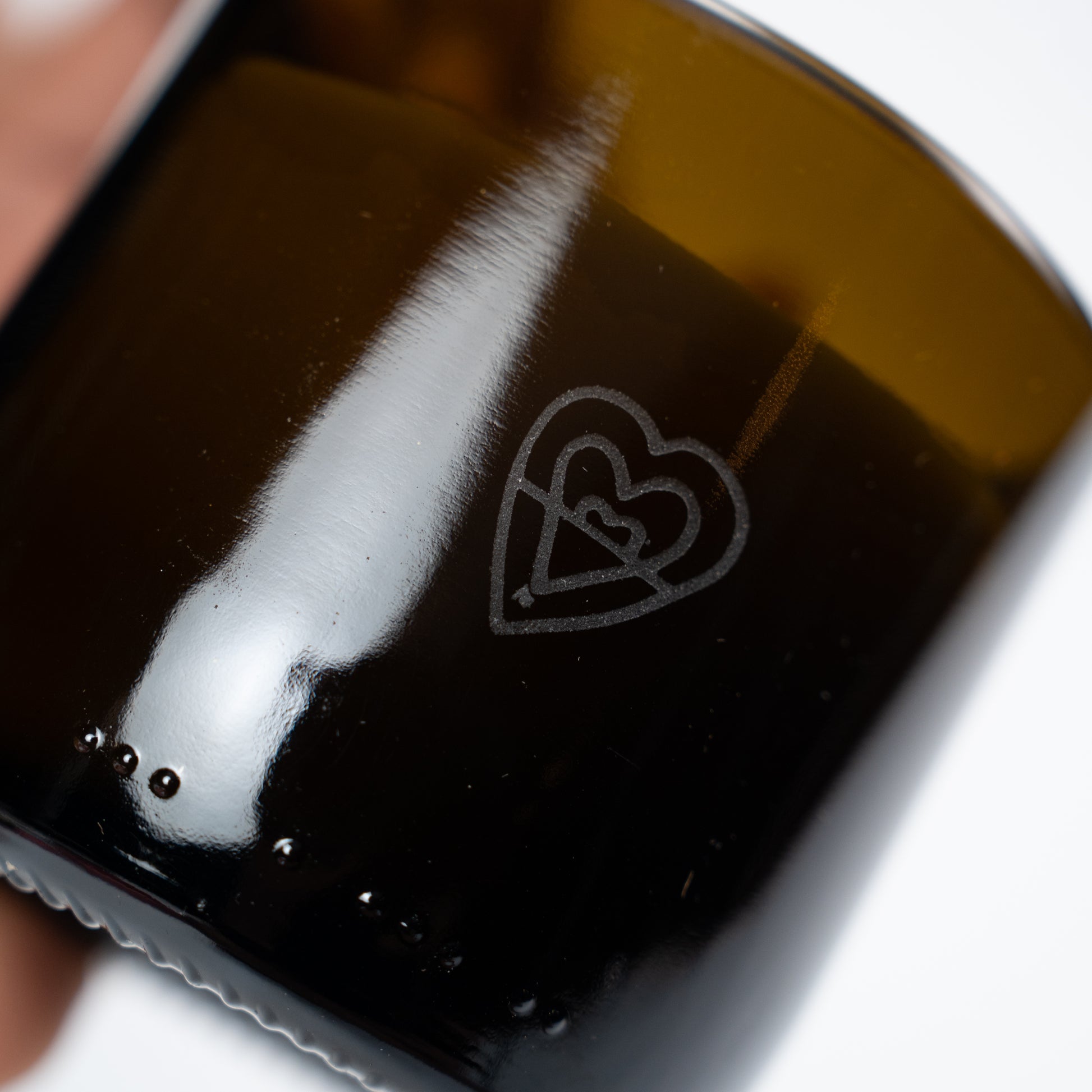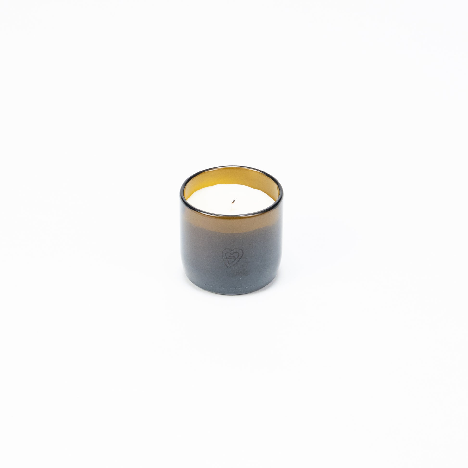 Recycled glass (holder), Soy wax, Beeswax, Citrus Aurantium, Dulcis Peel Oil.